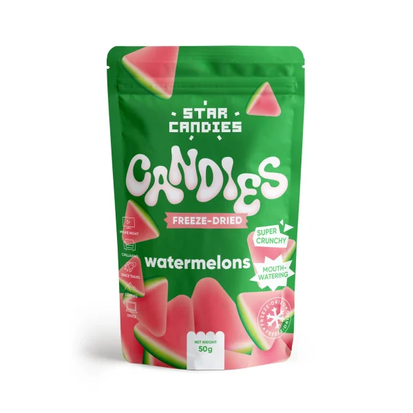 Die Hersun Star Candies „Candies Freeze-Dried Watermelons“ sind gefriergetrocknete Fruchtgummis mit Wassermelonen-Geschmack und greifen den aktuellen Trend innovativer Süßwaren auf. Durch das Gefriertrocknungsverfahren entsteht eine luftige, besonders knusprige Textur mit intensivem Fruchtgeschmack, wodurch sich das Produkt deutlich von klassischen Fruchtgummis abhebt. In der Verpackung mit 50 g eignet sich dieser Artikel optimal für den Impulsverkauf und bietet eine aufmerksamkeitsstarke Platzierung im Süßwarenregal.