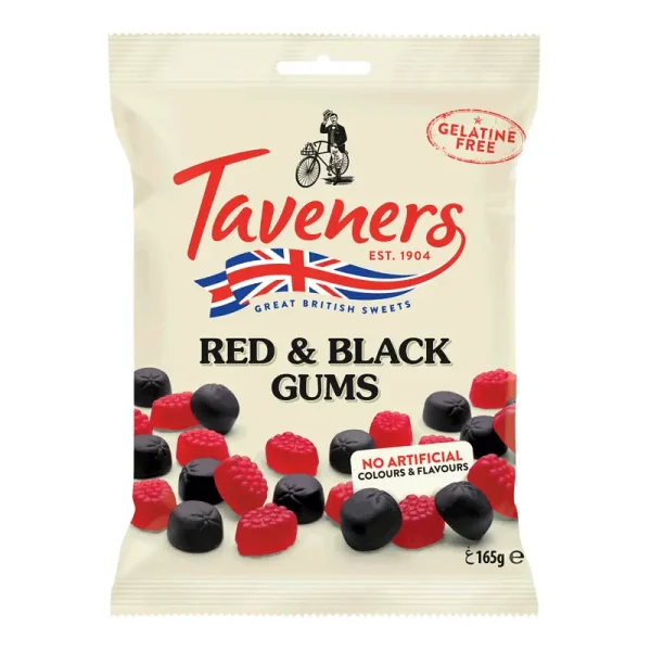 Die Taveners Red & Black Gums sind klassische britische Fruchtgummis mit Himbeer- und schwarzem Johannisbeergeschmack, hergestellt in Großbritannien. Die Kombination aus fruchtigen und leicht herben Noten bietet geschmackliche Abwechslung und spricht eine breite Zielgruppe im Fruchtgummi-Segment an. In der 165 g Verpackung eignet sich das Produkt ideal für den Impulsverkauf und ermöglicht eine attraktive Platzierung im Süßwarenregal.