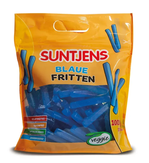 Die blauen Fritten sind Gummibonbons in Stäbchenform mit fruchtigem Geschmack und auffälliger blauer Optik. Als Neuheit im praktischen Doypack überzeugen sie durch den wiederverschließbaren Standbodenbeutel mit Griff, der eine flexible Handhabung und Präsentation ermöglicht. Hergestellt ohne Gelatine, glutenfrei und mit natürlichen Aromen, eignet sich der Artikel für eine breite Zielgruppe und unterstützt den Impulsverkauf.